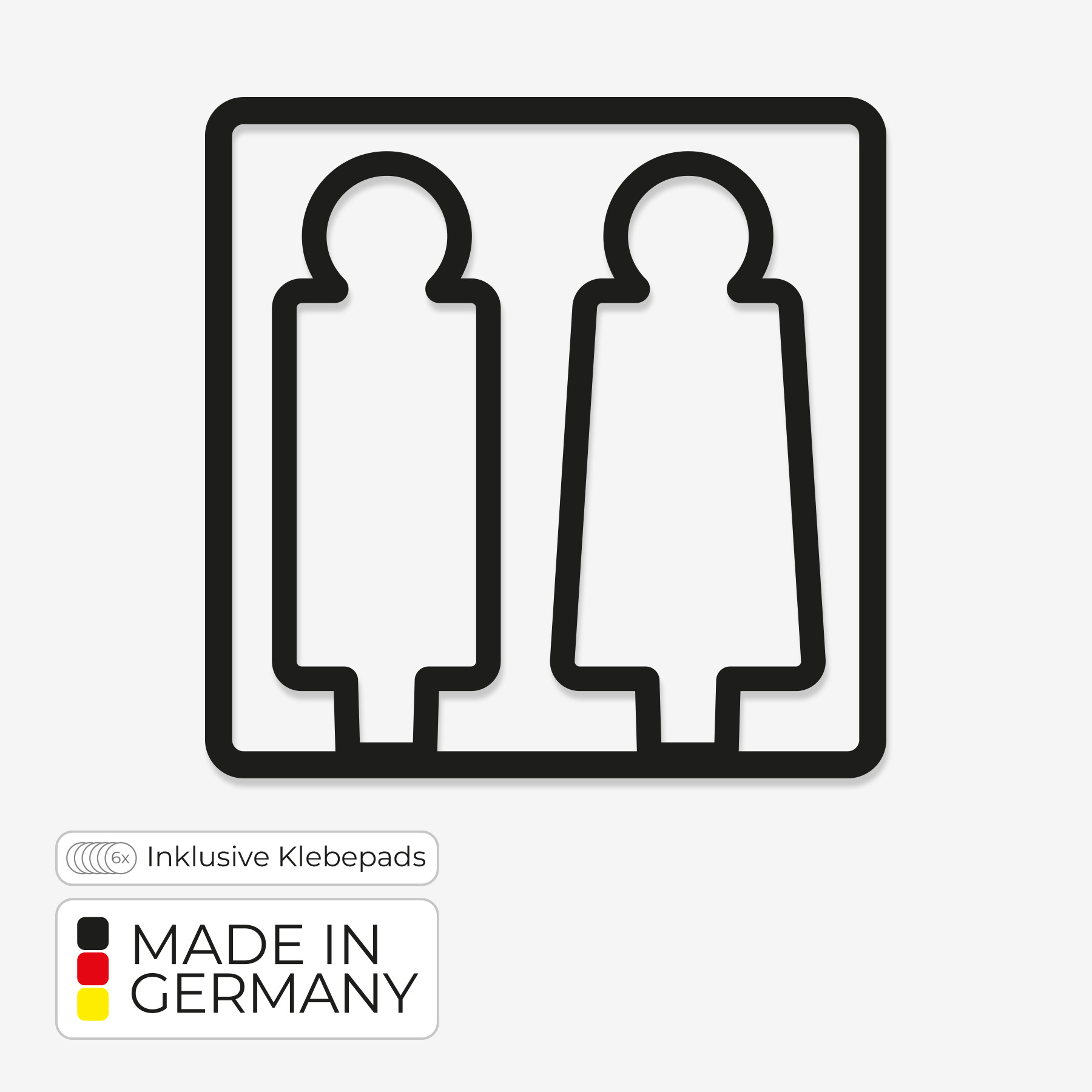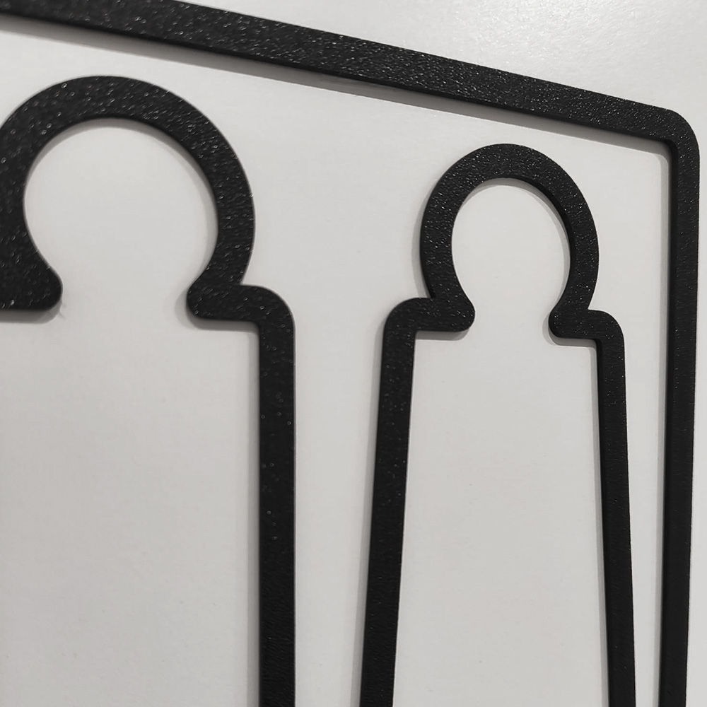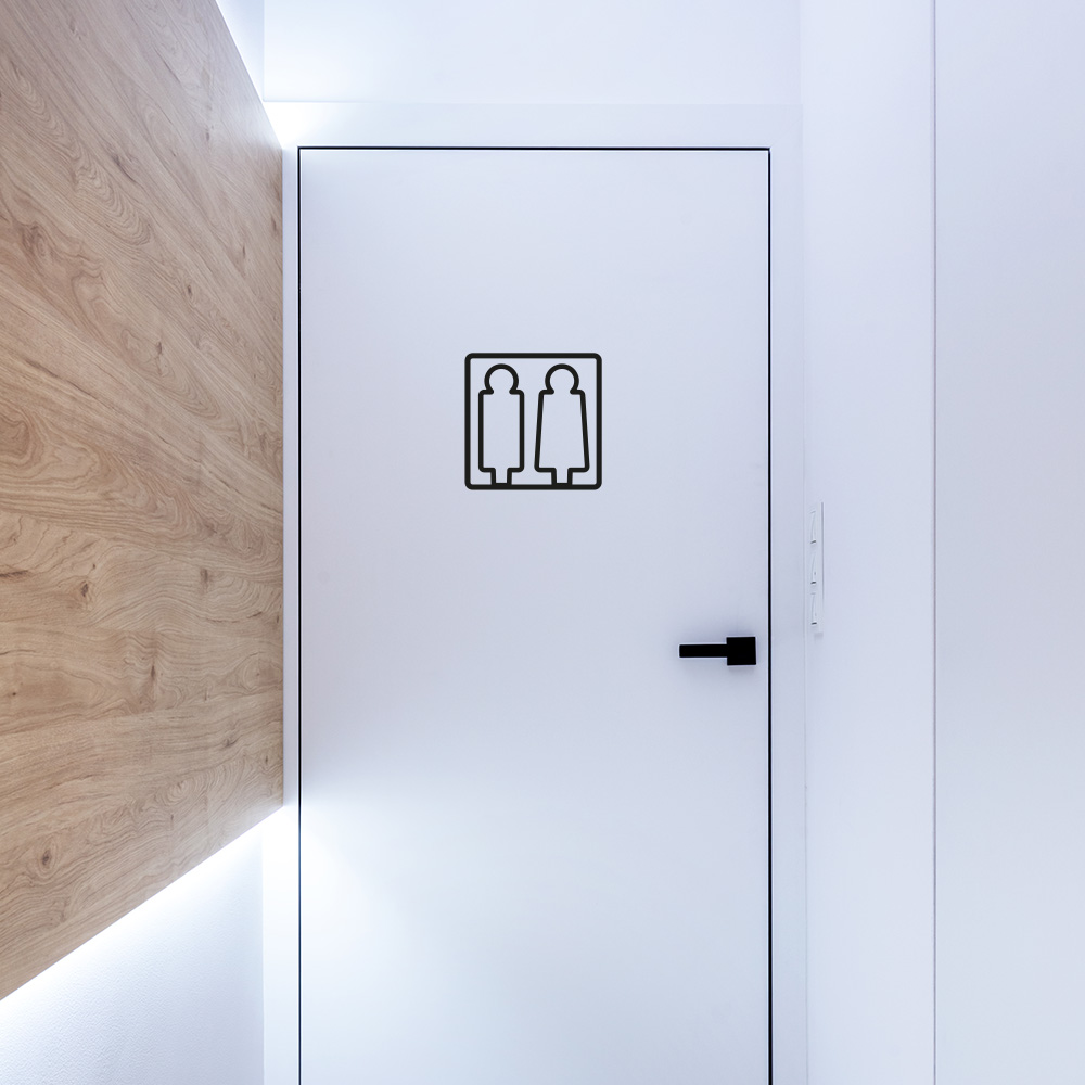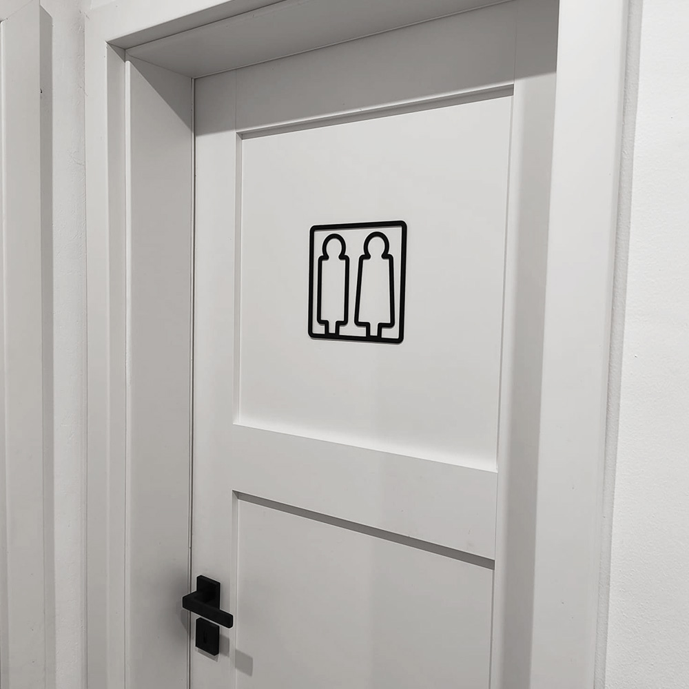 Dieses minimalistische WC-Schild vereint klare Formen und zeitloses Design in einem hochwertigen, 3D-gedruckten Hinweisschild. Das Symbol zeigt eine schlichte männliche und weibliche Figur in einem abgerundeten Quadrat – dezent, modern und sofort verständlich.
